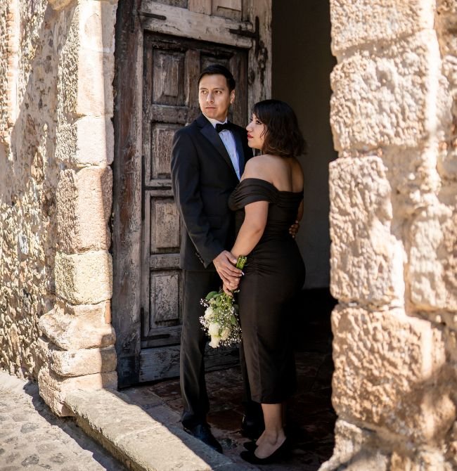 Soñamos con una celebración donde la elegancia se vista de sobriedad y los colores hablen de la intensidad de nuestro amor. Para fundirnos con la magia de este pueblo de plata, les pedimos que nos acompañen siguiendo una estética de colores profundos y mates. Queremos crear una atmósfera atemporal y elegante. Para lograrlo, les pedimos seguir estas pautas de vestimenta: